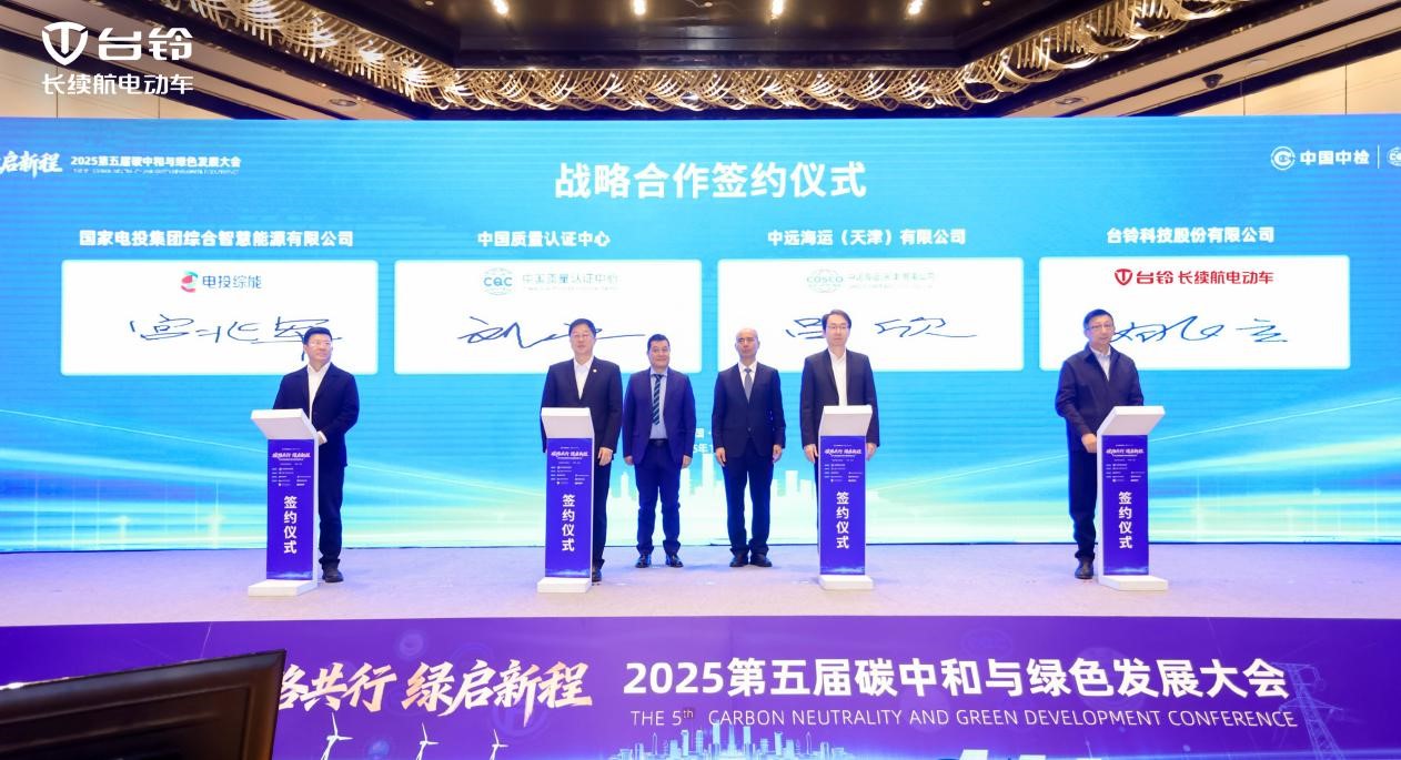 12月5日,2025第五届碳中和与绿色发展大会在京召开。作为电动车行业唯一受邀代表,台铃集团与中国质量认证中心(CQC)现场签署战略合作协议,双方将共同推动 “智联电动车绿色低碳测评体系” 在国内的标准化落地与实践应用。