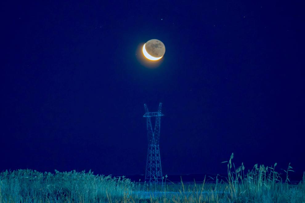 12月16日在黑龙江省黑河市拍摄的月亮。新华社发(钱泊羽摄)
