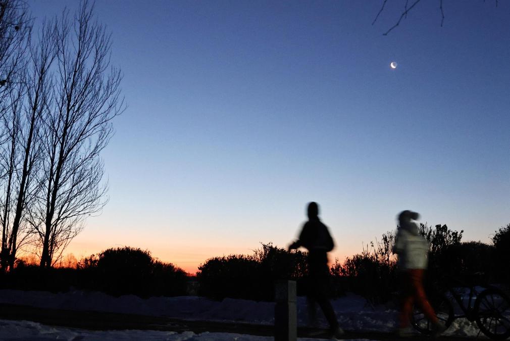 12月16日在黑龙江省富锦市拍摄的月亮。新华社发(曲玉宝摄)