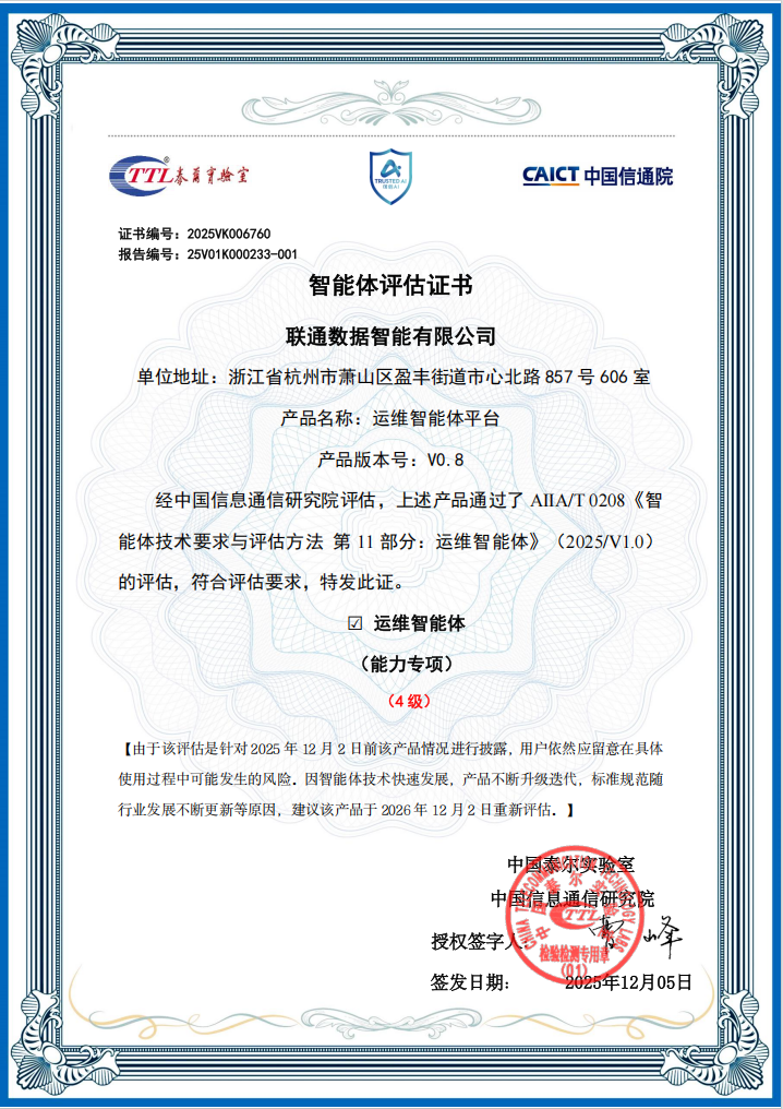 近日,元景万悟·运维智能体平台顺利通过中国信通院可信AI运维智能体能力专项评估并获得4级,平台基础技术能力、场景应用能力、服务成熟度获得权威认可。