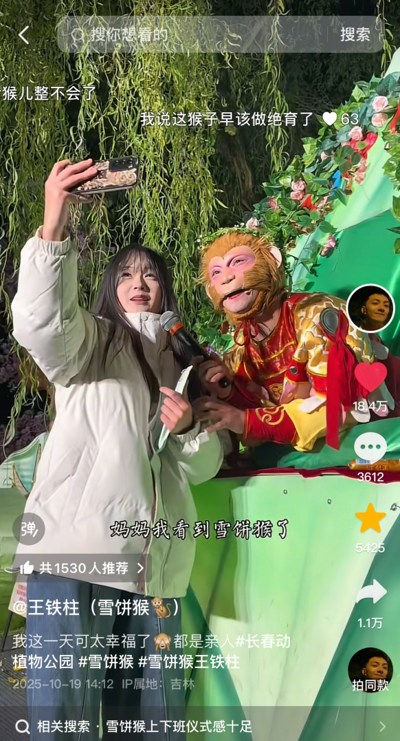 长春动植物公园凭借“雪饼猴”等NPC火出圈
