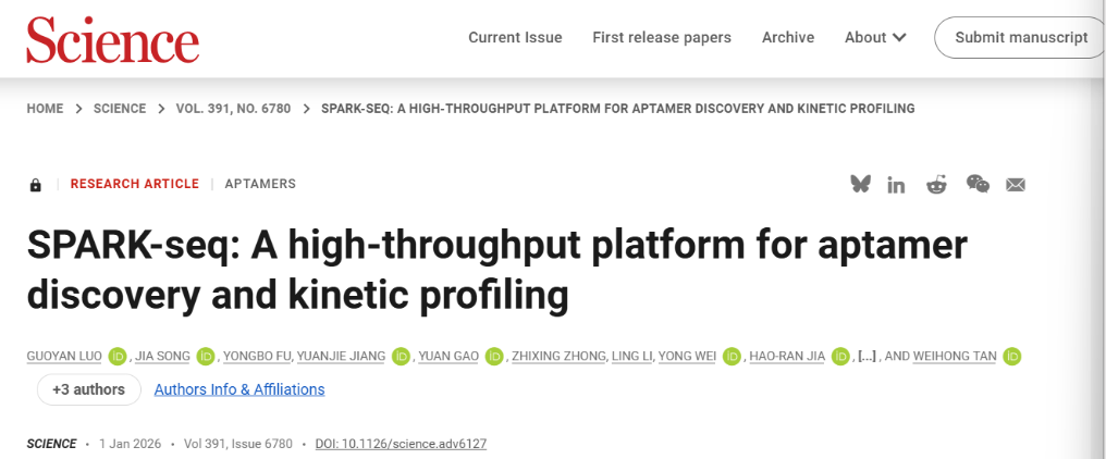 新华社杭州1月2日电(记者黄筱)我国科学家成功构建了能够在单细胞分辨率下,同步实现细胞膜表面标志物发现与靶向核酸适体探针获取的一体化平台——SPARK-seq。该技术为分子识别、原创靶点发现及精准医学研究提供了全新工具,有望为众多因靶点不明而缺乏有效疗法的疾病开辟新的治疗途径。