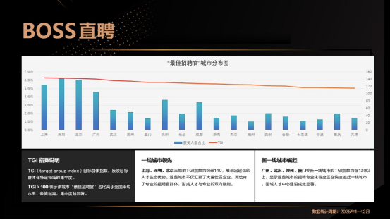 从2025年的整体趋势来看,人才密集度越高的行业,“最佳招聘官”的渗透率越高。报告披露,电子商务、互联网、批发/零售位列行业分布前三,合计占比超过23%,反映出这些行业对高效人才连接能力的高度依赖,以及在招聘专业化上的持续投入。