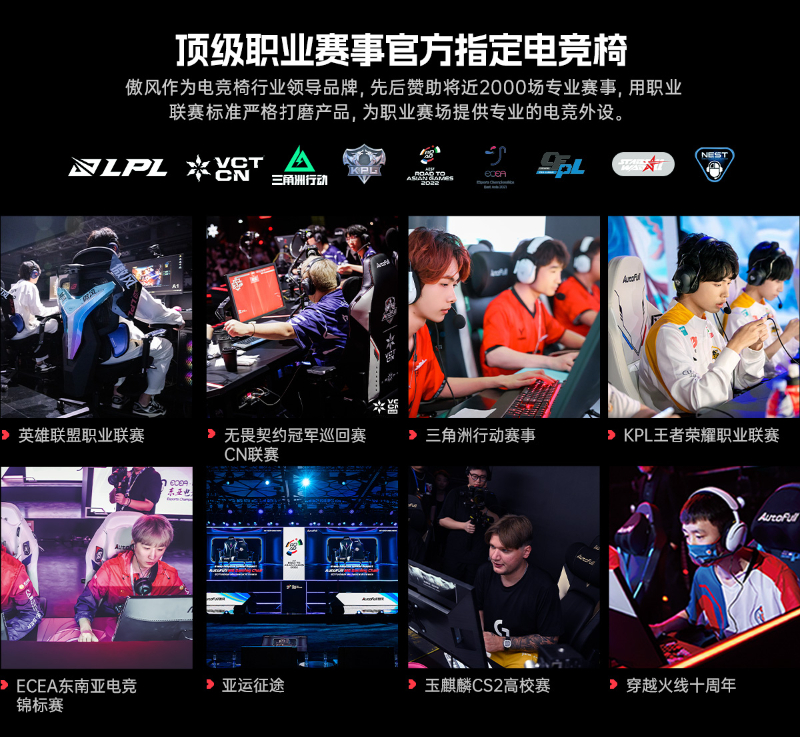 除LPL外,傲风还以专业电竞椅领军者身份,全程支持VCT CN、KPL等全球近2000场顶级电竞赛事,与数百支顶尖战队建立深度合作关系。凭借前沿的人体工程学科技、稳定耐用的产品性能及舒适的久坐体验,傲风赢得了职业选手与全球电竞爱好者的广泛认可,夯实了品牌在电竞外设领域的核心地位。