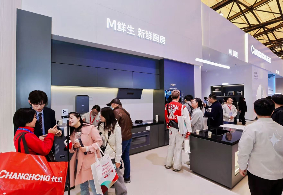 在全屋智能与场景化体验方面,长虹展现出全家庭场景布局的硬实力。AI健康厨房实现烟机灶、燃热、净水器的AI烟烹联动,风随火起的智能操作让烹饪更从容,AI双气安防系统则为居家安全保驾护航;鲜活水茶吧机以AI智能打造健康饮水体验,实现传统与现代的创新碰撞。