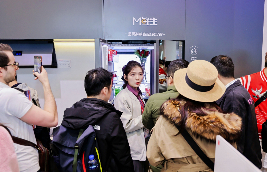 美菱AI冰箱搭载水分子激活保鲜、冷藏温湿度AI精控等五大核心技术,实现食材全周期精准保鲜;洗衣机首创全屏外观,结合AI全流程洗护、蓝氧去残留技术,兼顾颜值与实用性,套系中融入的人感星空投影氛围灯等设计,让科技与生活美学相融。