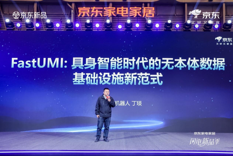 在发布会上,鹿明机器人联席CTO丁琰发表了《FastUMI:具身智能时代的无本体数据基础设施新范式》的主题演讲,系统阐述了具身智能数据采集的发展趋势,并首次介绍了FastUMI Ego在具身数据体系中的作用。