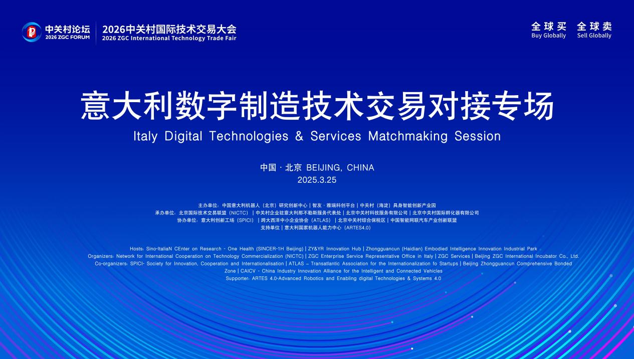3月25日下午,2026中关村论坛年会中关村国际技术交易大会—意大利数字制造技术交易对接专场在中关村国际技术交易中心举行。活动以“意大利机器人与具身智能技术+产业合作”为主题,聚焦机器人、具身智能及工业软件等重点领域,汇聚中意两国政产学研投各界代表,推动意大利优质科技项目实现精准匹配与务实合作,持续构建开放协同的中意科技创新合作生态。