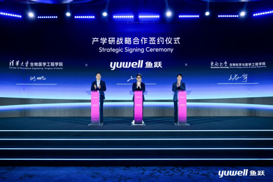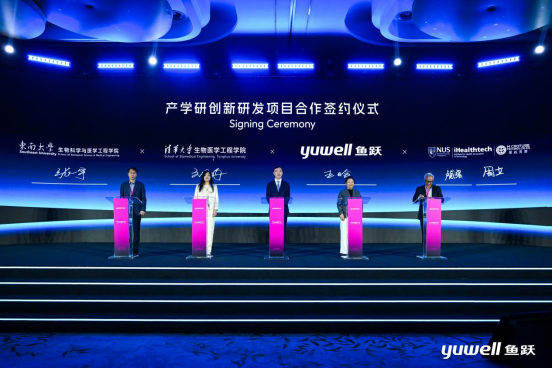 会议当天,鱼跃分别与东南大学签署《智慧医疗创新研发项目》,聚焦慢病管理、居家健康监测,联合攻关生物传感、即时检测、人工智能及可穿戴设备技术;与清华大学签署《低温成型导电水凝胶微针研发项目》,致力于为慢性病管理和可穿戴健康监测提供新型微针解决方案;与新加坡国立大学iHealthTech/星焱灵犀团队签署《穿戴医疗创新研发项目》,共同探索下一代智能穿戴医疗产品。此外,鱼跃还与清华大学、东南大学分别达成产学研战略合作,围绕核心技术突破、高端人才培养、人工智能医院协作及临床应用转化,构建一体化协同创新体系。