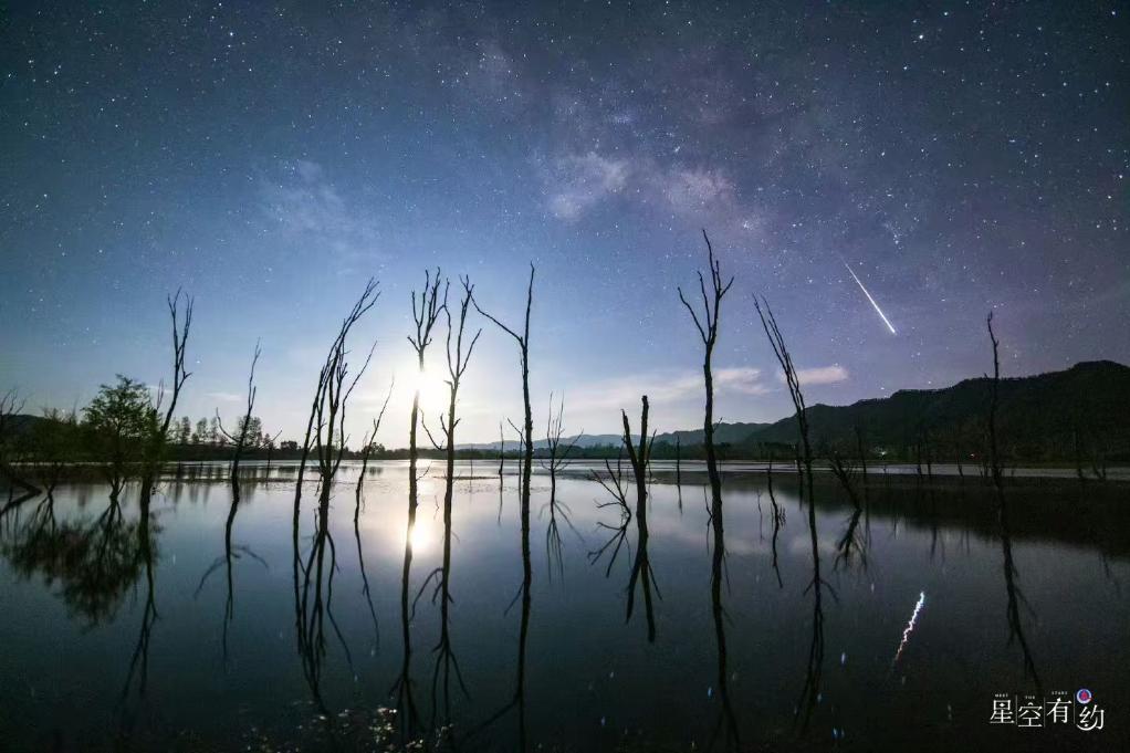 2022年4月23日,在云南念湖拍摄的天琴座流星雨。(戴建峰 摄)