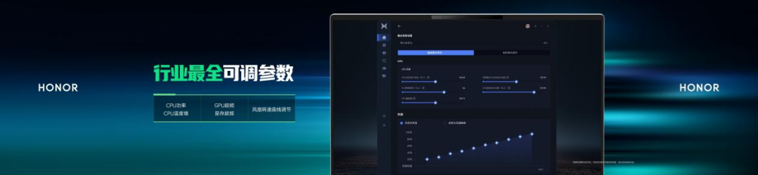 为满足不同用户需求,荣耀WIN游戏本H9出厂即附带行业最全的可调参数,打破以往需进入BIOS调节的繁琐操作,让小白用户也可轻松调试海量参数。荣耀提供官方及英特尔调校方案,同时联合笔吧、极客湾等极客群体打造联调方案,支持调校广场一键切换。