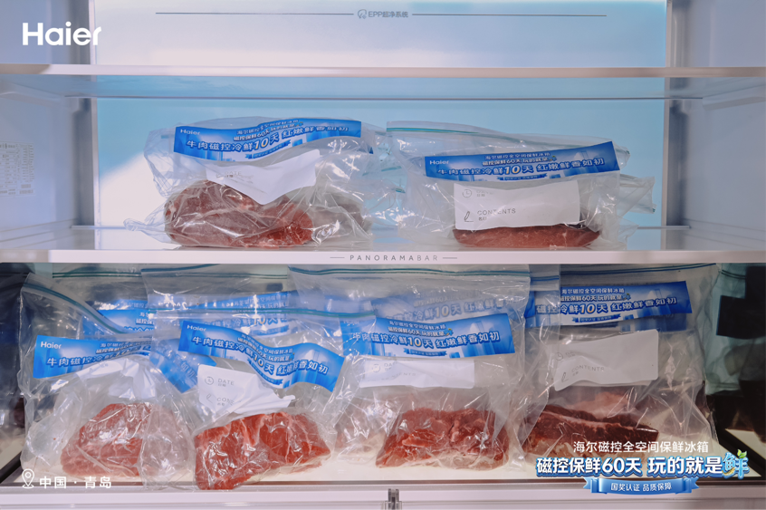 据悉,海尔磁控全空间保鲜冰箱采用磁控冷鲜技术保存的冷鲜肉,可实现“红嫩鲜香10日如初”;磁控冻鲜技术保存的大黄鱼、黄花鱼等可实现“抑腥增鲜、鲜香味美60天”。这一技术承诺,正是本次“保鲜对比挑战”的核心验证目标。