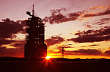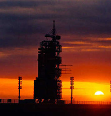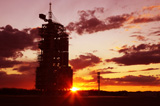 晨曦中的神舟飞船发射塔架