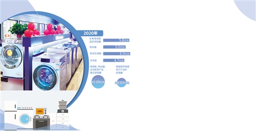 我国是全球最大的家电生产基地和家电消费大国。根据中国家用电器研究院测算,2020年,彩色电视机居民保有量为5.8亿台,电冰箱5.0亿台,洗衣机4.7亿台,房间空调器6.0亿台,吸排油烟机3.0亿台,热水器4.4亿台。