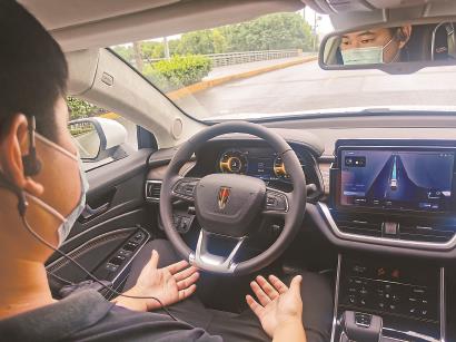 自动驾驶车上,安全员全程双手“脱把”。 李晔 摄