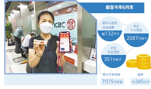 数据显示,截至9月10日,工行北京分行试点的数字人民币应用场景达8万多个,集中在与社会民生紧密相关的交通出行、餐饮住宿、购物消费、旅游观光、医疗卫生、通信服务、票务娱乐7大类场景。中国人民银行近期发布的《中国数字人民币的研发进展》白皮书显示,截至今年6月末,数字人民币试点场景已超132万个,开立个人钱包2087万余个、对公钱包351万余个,累计交易笔数7075万余笔、金额约345亿元。(记者 陈果静)