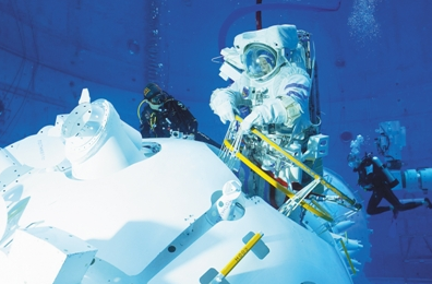 身着定制舱外服进行太空漫步