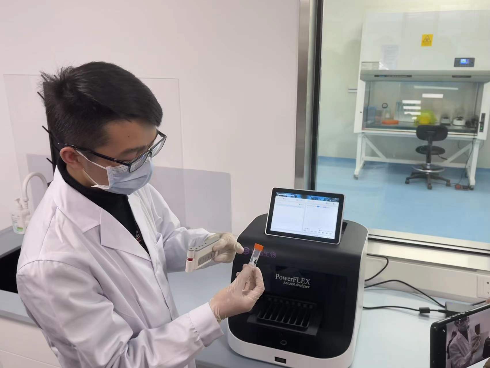 2020年10月,在北京市科委支持下,刘鹏团队等多家单位开展应急攻关,开发完成了公共空间生物气溶胶新冠病毒核酸监测系统。2021年4月至7月,该系统在北京地坛医院进行了超过100例样本的临床测试验证,阳性检出率达到现有实时荧光定量PCR体系检出率的三倍。2021年8月至9月,该系统完成第三方测试和企业标准自我声明公开,具备上市销售条件。同时,研发团队按照专家意见在P3实验室进行了充分实验验证,证明了气溶胶采集的安全性。