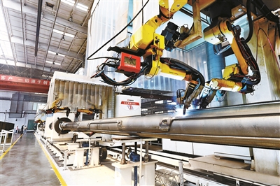 吴志杰:比如我们生产的钻杆,需要进行超厚钢板的焊接,对焊接技术要求很高,原来靠人工,整个厂里只有二三十年工作经验的老师傅能干,实现智能化后,可以将工匠师傅的经验参数化,复制到专门的软件里,自动焊接,输出是固定的。原来一天焊接两个产品,现在焊接机器人一天可以焊接10个。