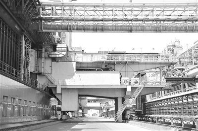 ▲太重集团研制的推焦车正在晋南钢铁集团执行推焦任务。资料照片