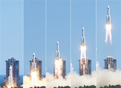 7月24日14时22分,搭载问天实验舱的长征五号B遥三运载火箭,在我国文昌航天发射场准时点火发射,约495秒后,问天实验舱与火箭成功分离并进入预定轨道,发射取得圆满成功。新华社记者 李刚摄