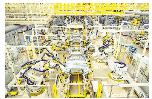 极氪智慧工厂焊接车间,经过5G全连接改造后,该车间可实现无人化操作,又称“黑灯工厂”。 方正梁/摄