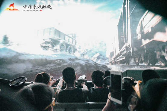 可以容纳上千人的超大型立体巨幕影院《东方欲晓》当天座无虚席。该项目以超大型立体巨幕配合全新的视听技术,生动展现了中国近现代以来,从农耕国家向工业化强国迈进的全过程。其中,珍贵的彩色高清版开国大典影像资料更是首次呈现在上千平方米的巨大荧幕上,让游客仿若亲临盛事,真切感受到穿越时空的震撼。