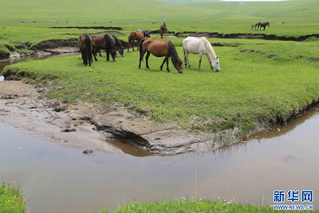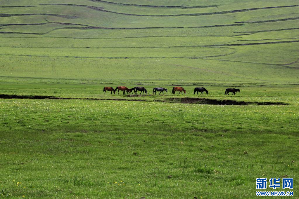 6月8日,马匹在甘肃省定西市岷县境内的狼渡草原上吃草。 初夏时节,位于甘肃省定西市岷县境内的狼渡草原披上绿装,牛马成群,空气清新,吸引了众多游客。狼渡草原属于青藏高原东段和秦岭山脉西缘过渡带,平均海拔2600米,夏日气候凉爽宜人。 新华社发(王克贤 摄)