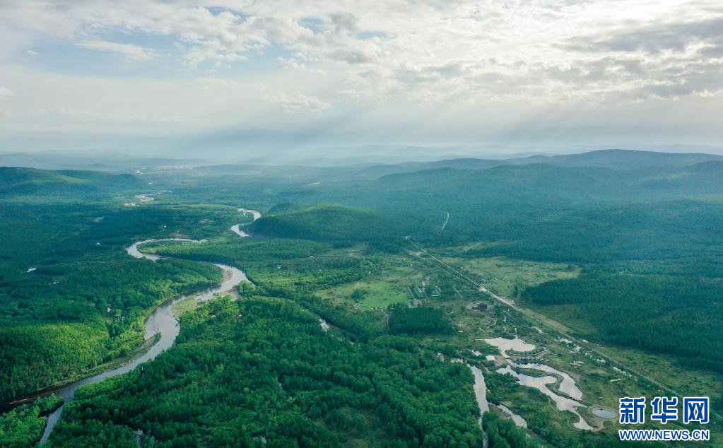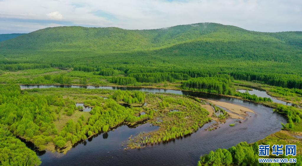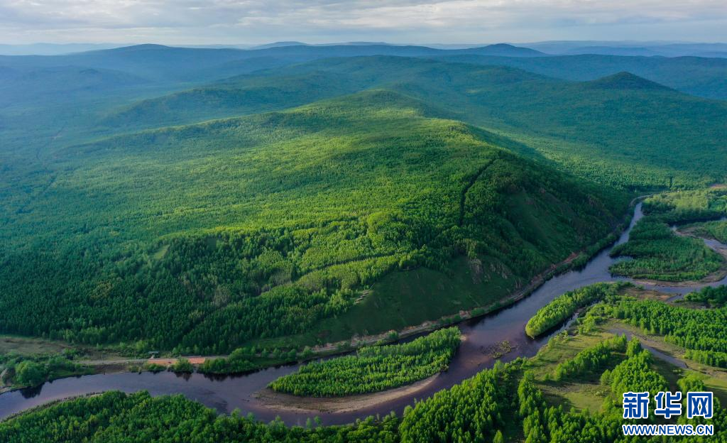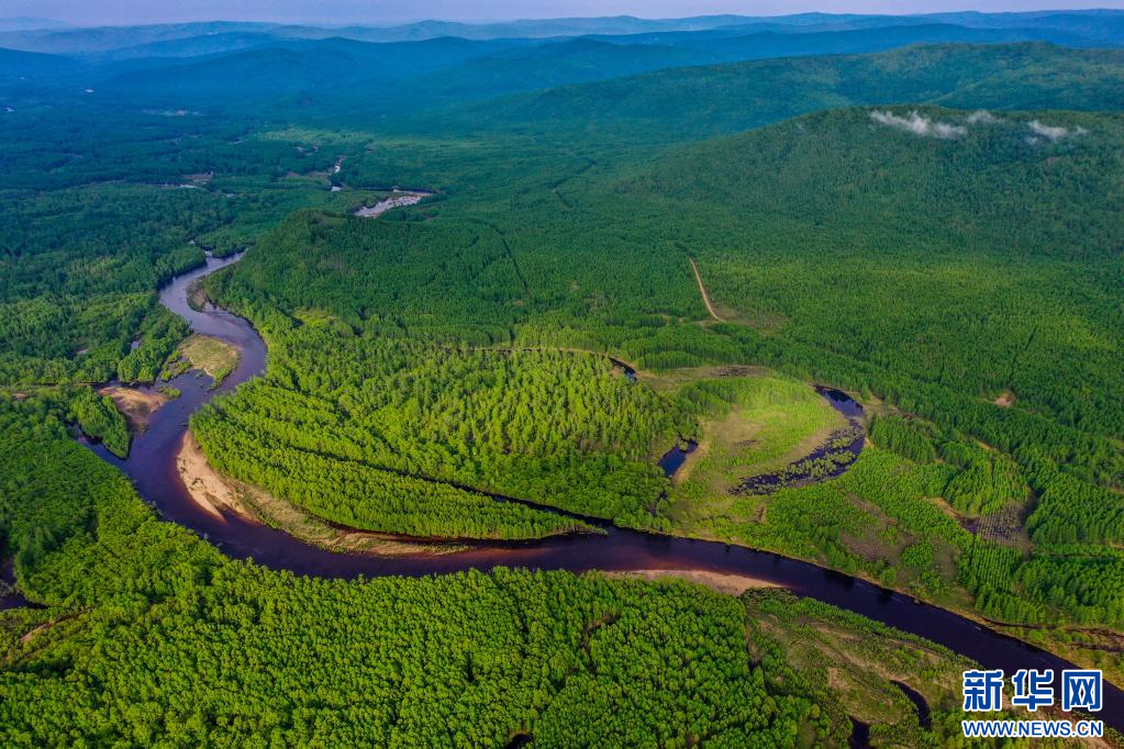 这是在内蒙古根河源国家湿地公园拍摄的景象(无人机照片,6月8日摄)。 初夏时节,位于内蒙古大兴安岭深处的根河源国家湿地公园森林繁茂,郁郁葱葱,河流在林海中蜿蜒流淌,景色宜人。 新华社记者 刘磊 摄