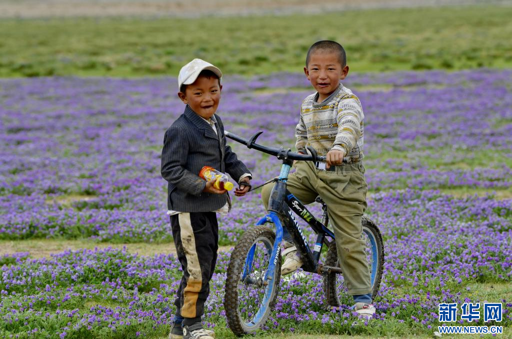 西藏当雄县格达乡格达村的儿童在草场玩耍(6月19日摄)。 夏日里,西藏拉萨市当雄县境内的天然草场绿草如茵,景色优美。 新华社记者 张汝锋 摄