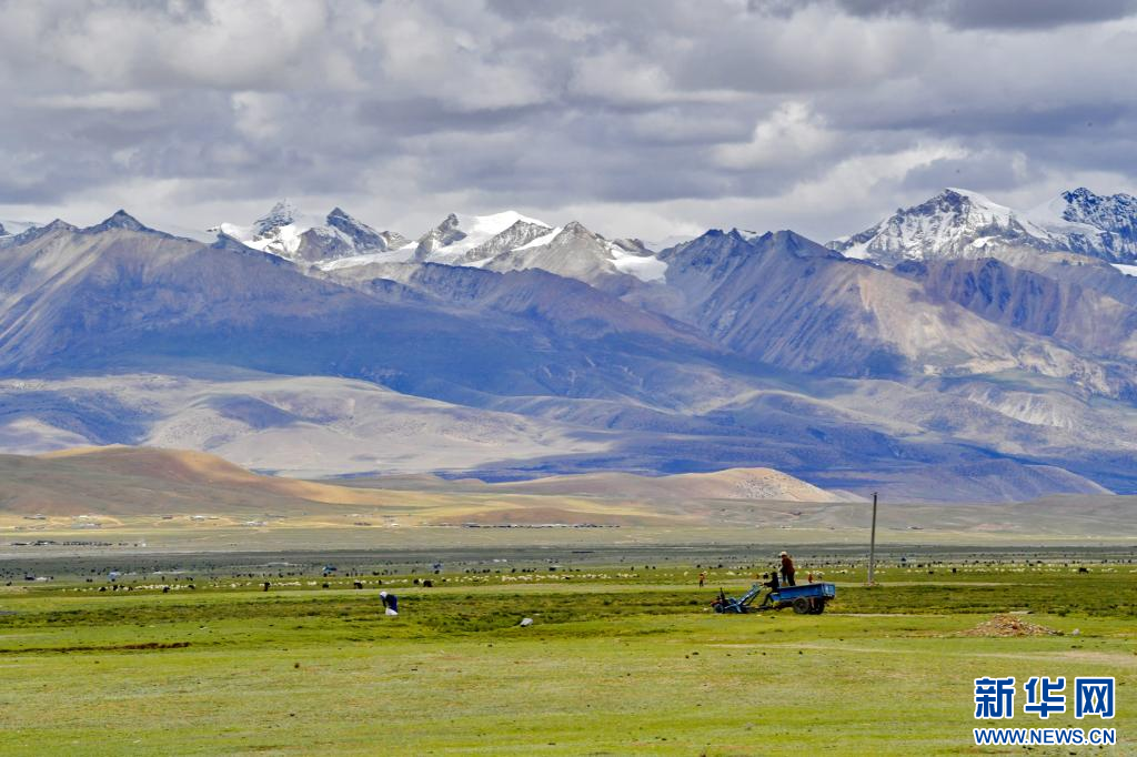 西藏当雄县格达乡境内的草场(6月19日摄)。 夏日里,西藏拉萨市当雄县境内的天然草场绿草如茵,景色优美。 新华社记者 张汝锋 摄