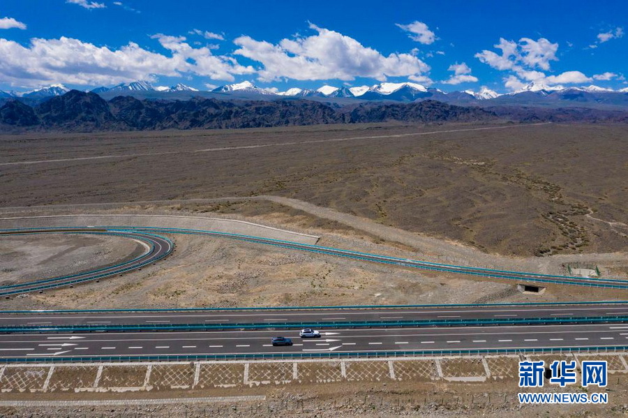 京新高速公路途经新疆伊吾县前山哈萨克民族乡(6月29日摄,无人机照片)。新华社记者 胡虎虎 摄
