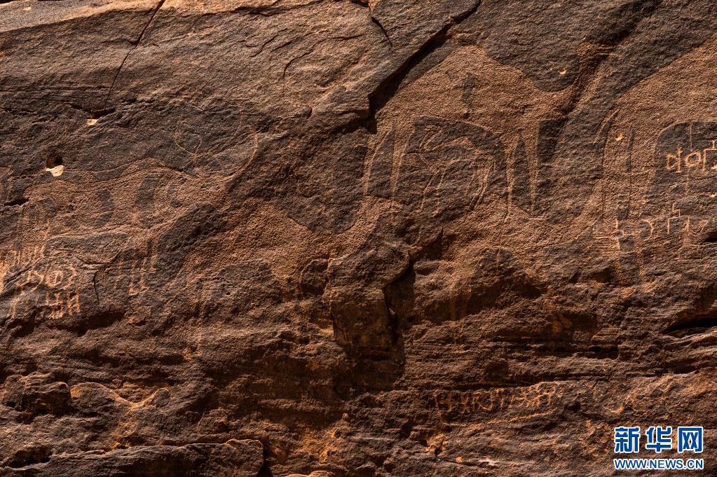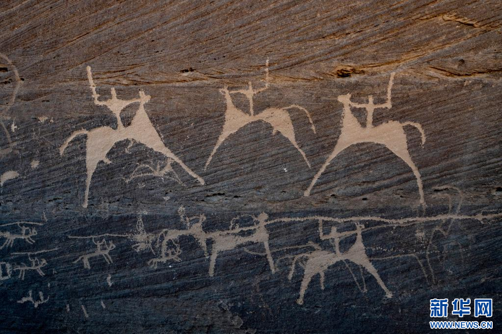 这是2020年9月20日拍摄的沙特阿拉伯奈季兰希马岩画。 在中国福州举行的第44届世界遗产大会上,沙特阿拉伯奈季兰希马岩画遗址被列入联合国教科文组织世界遗产名录。 新华社发(沙特文化部供图)pagebreak