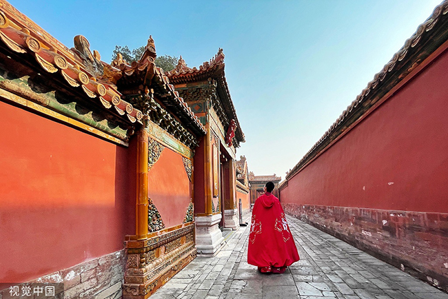 大年初一北京故宫人气旺,游客着汉服庆春节。
