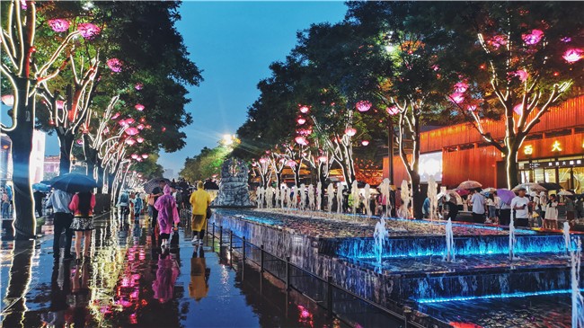 全面发展月光经济、夜游经济。以大型赛事、演艺表演、活动为主基调,结合区域现存建筑及商业形态,尊重唐城墙历史遗迹的历史属性,结合“一带一路”主打影响力文化输出,与大雁塔北广场形成串联,首尾呼应。形成一场两区:大型演艺广场、丝路文化风情区、休闲餐饮区、兰桂坊酒吧文化街。改造中央雕塑带,增加互动商业单元及两侧商业人流互通。