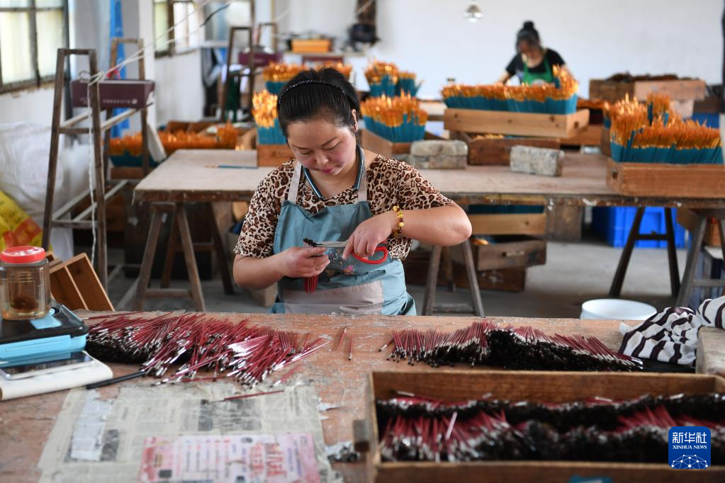 8月25日,在泾县榔桥镇一家油画笔企业,工人在加工油画笔。 近年来,安徽省宣城市泾县榔桥镇发挥油画笔产业优势,多举措助力油画笔产业发展。目前,榔桥镇拥有油画笔加工企业20多家,年产值超过2亿元,带动1000余人实现就业,助力乡村振兴。 新华社记者 刘军喜 摄pagebreak