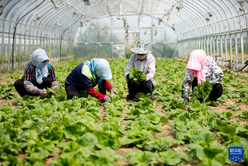 8月29日,在宁夏银川市贺兰县洪广镇欣荣村果蔬种植园区,农民在蔬菜大棚内打理蔬菜苗。 宁夏银川市贺兰县洪广镇欣荣村是一个“十二五”生态移民搬迁安置村,近年来,欣荣村依托区位优势发展香菇、番茄、红树莓、葡萄等特色设施果蔬产业,助力农民增收致富。目前,欣荣村有180余栋大中拱棚,并建设了配套冷库,设施果蔬产业为150余名群众提供了稳定的就业岗位。 新华社记者 杨植森 摄pagebreak