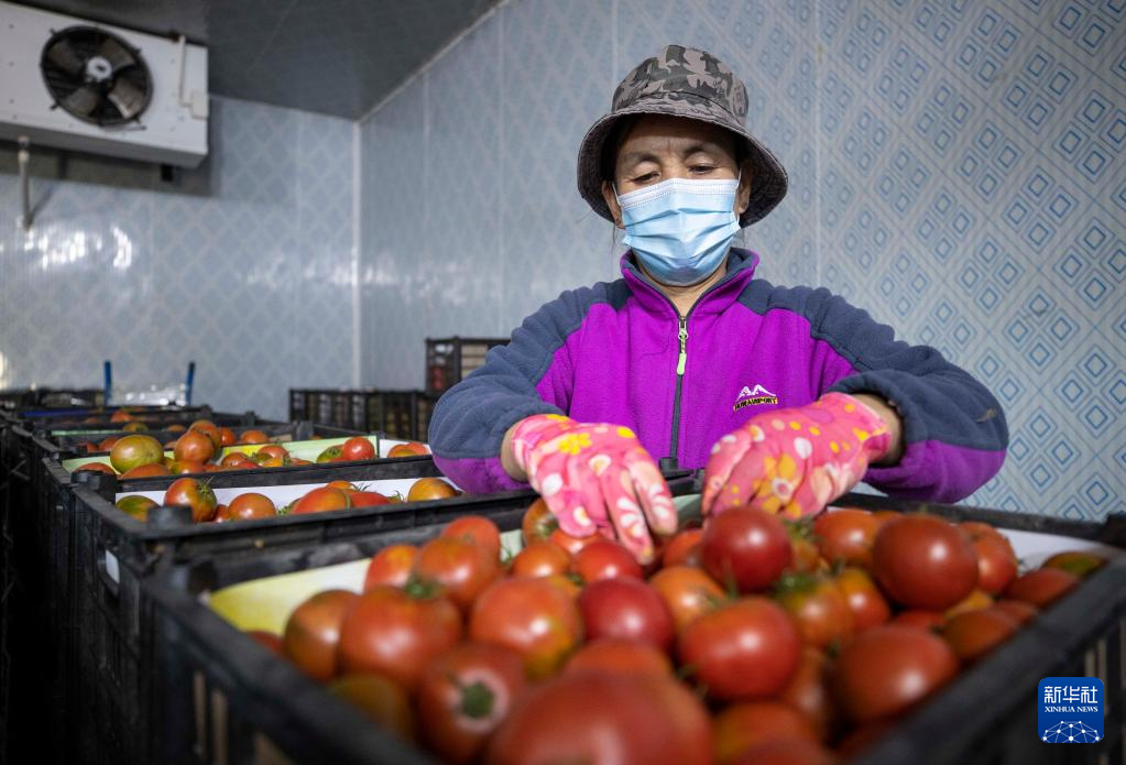 8月29日,在宁夏银川市贺兰县洪广镇欣荣村冷库,农民在分拣番茄。 宁夏银川市贺兰县洪广镇欣荣村是一个“十二五”生态移民搬迁安置村,近年来,欣荣村依托区位优势发展香菇、番茄、红树莓、葡萄等特色设施果蔬产业,助力农民增收致富。目前,欣荣村有180余栋大中拱棚,并建设了配套冷库,设施果蔬产业为150余名群众提供了稳定的就业岗位。 新华社记者 杨植森 摄pagebreak
