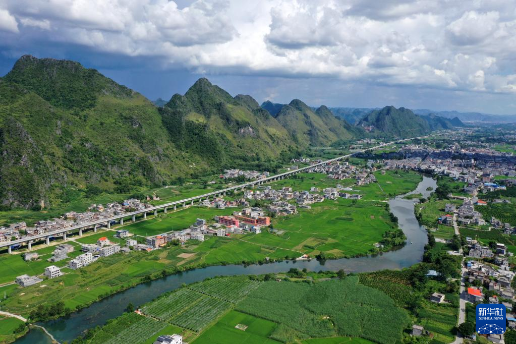 这是广西都安瑶族自治县高岭镇境内的乡村风貌(8月31日摄,无人机照片)。 近年来,广西都安瑶族自治县不断加大农村发展力度,基础设施不断完善,生态环境不断优化,村容村貌不断改观,人居环境不断改善,已经实现全面脱贫的乡村,风貌日新月异,步步走向振兴。 新华社记者 周华 摄