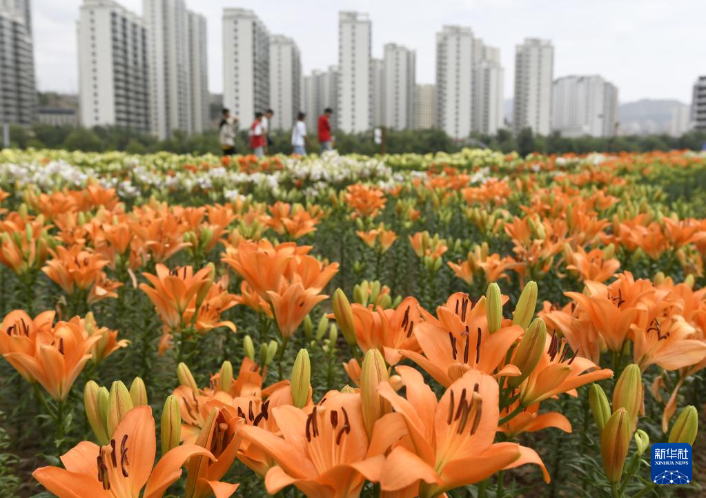 9月4日,游客在永靖县刘家峡镇黄河花堤上赏花。 近日,甘肃省永靖县刘家峡镇黄河花堤上种植的百合、紫薇等花卉竞相绽放,吸引不少游人前来休闲观光。近年来,永靖县刘家峡镇依托黄河生态资源,打造集休闲旅游、生态保护为一体的“花园式”景观带,不断提升小城“颜值”。 新华社发(史有东 摄)