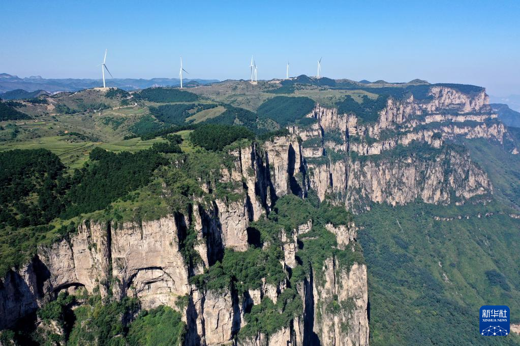 这是在平顺县玉峡关镇拍摄的太行山风光(无人机照片,9月8日摄)。 从空中俯瞰山西省平顺县境内的太行山地貌,雄、奇、险、峻,层次分明,景色壮美。 新华社记者 杨晨光 摄