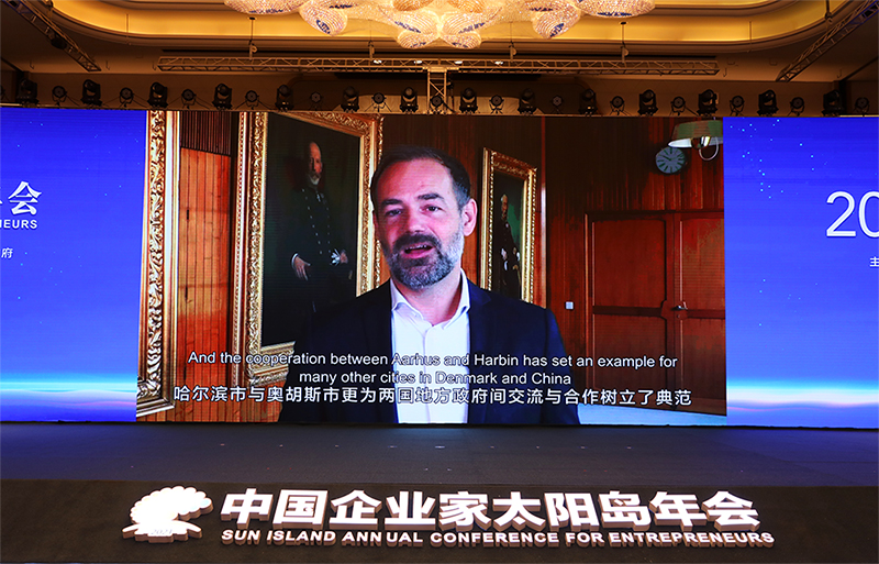 9月15日-17日,由新华社民族品牌工程办公室、新华网、黑龙江省商务厅、哈尔滨市人民政府联合主办,太阳岛集团承办的2021中国企业家太阳岛年会在黑龙江哈尔滨举办。政府领导、院士、知名专家学者、企业家等嘉宾,以线上线下相结合的方式参加年会。活动现场,丹麦奥胡斯市市长雅各布·宾德高发表视频致辞。
