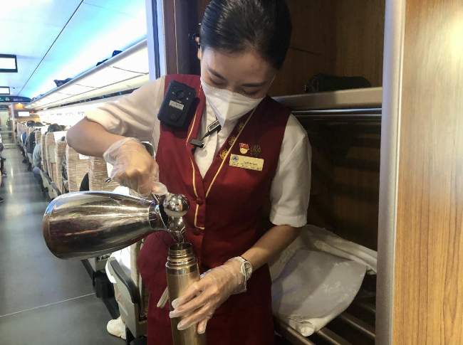 9.精心挑选,精细服务,精致之旅。为了满足旅客们不同需求,雪之梦包乘组精心挑选各类用品,配备了班组特色服务箱。消毒湿巾、一次性口罩,为疫情期间旅客安全保驾护航;各种接口的多功能充电器,为忘带充电器的旅客雪中送炭;雨衣、雨鞋、鞋油护理套装,为在雨天、风沙天气出行的旅客排忧解难;一撕一贴使用方便的暖宝宝,让冬日乘车旅客暖溢心间;还配备有棉签、牙线、耳塞等等旅客可能需要的用品。想在旅客前面,服务旅客身边,十分的准备,只为满足旅客一