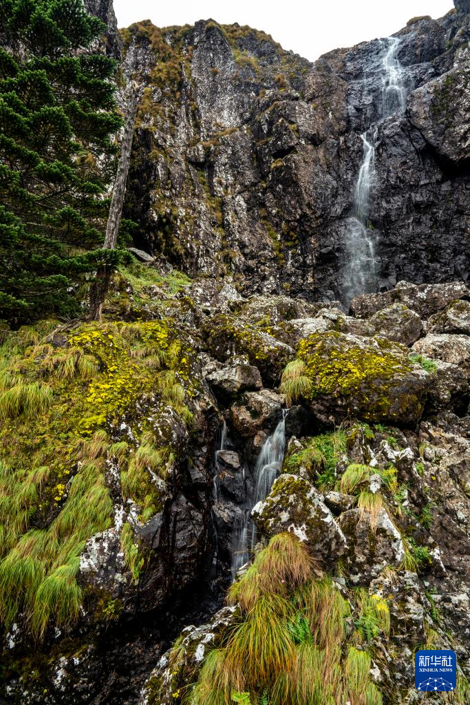 轿子山间的瀑布(9月22日摄)。 云南轿子山国家级自然保护区位于昆明市东川区与禄劝彝族苗族自治县的交界,是昆明地区的生态屏障。秋日的保护区内云雾缭绕,景色迷人。 新华社记者 江文耀 摄pagebreak