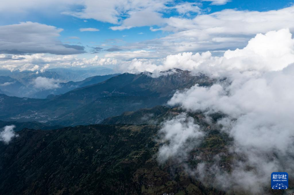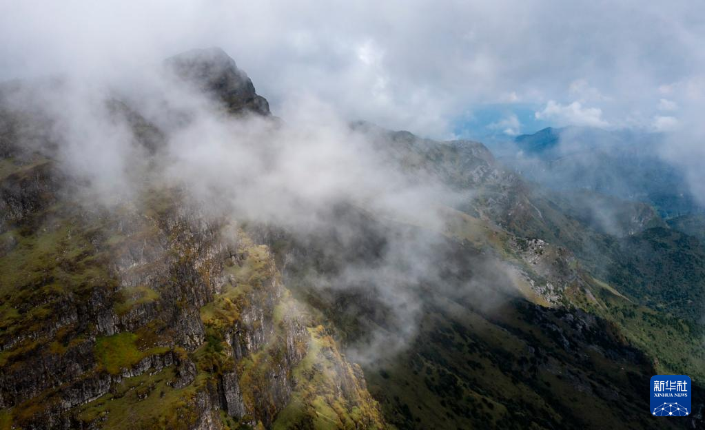 云雾缭绕的轿子山(无人机照片,9月22日摄)。 云南轿子山国家级自然保护区位于昆明市东川区与禄劝彝族苗族自治县的交界,是昆明地区的生态屏障。秋日的保护区内云雾缭绕,景色迷人。 新华社记者 江文耀 摄pagebreak