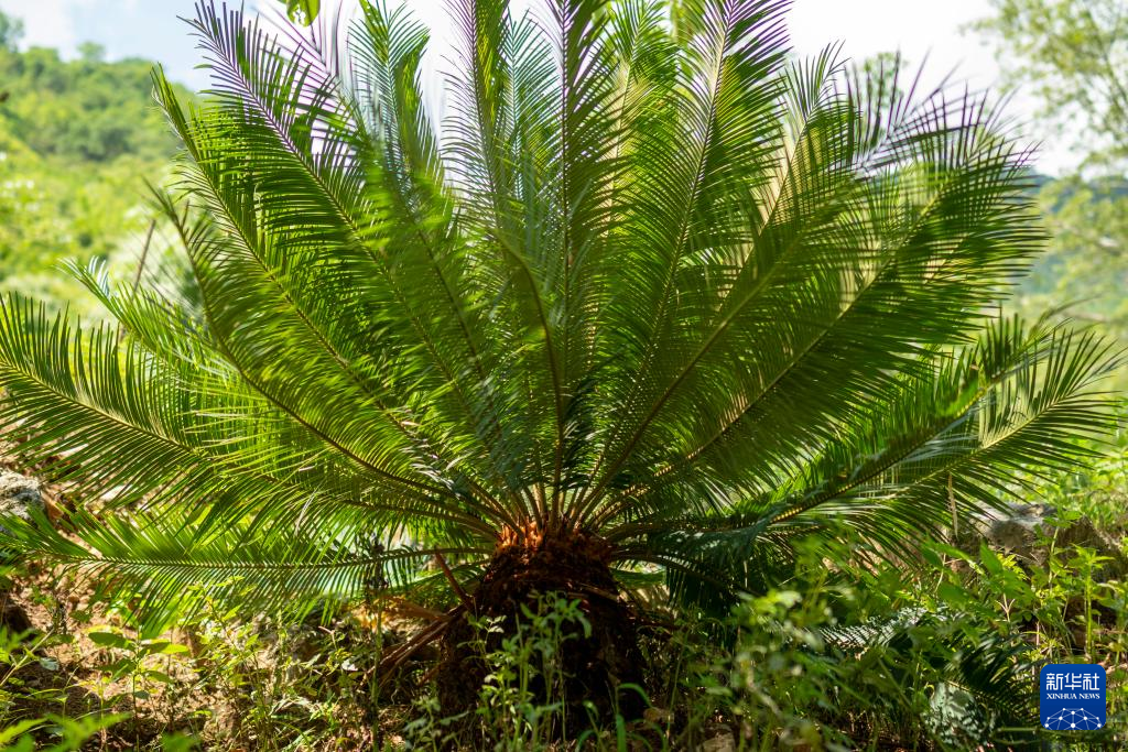 轿子山国家级自然保护区内生长的攀枝花苏铁(9月23日摄)。 云南轿子山国家级自然保护区位于昆明市东川区与禄劝彝族苗族自治县的交界,是昆明地区的生态屏障。秋日的保护区内云雾缭绕,景色迷人。 新华社记者 江文耀 摄pagebreak