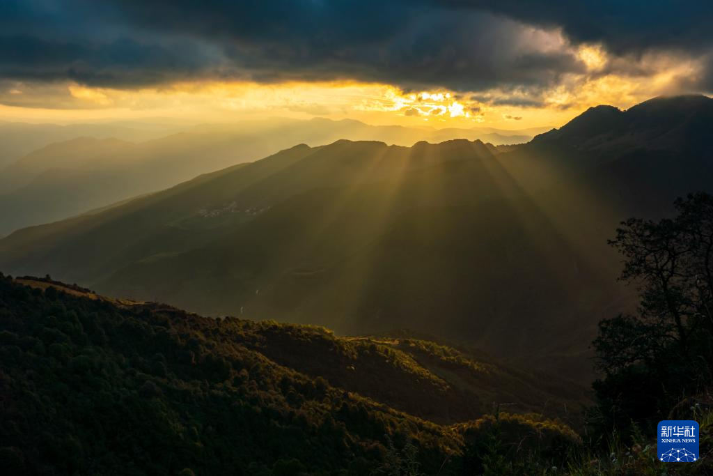 轿子山日落美景(9月22日摄)。 云南轿子山国家级自然保护区位于昆明市东川区与禄劝彝族苗族自治县的交界,是昆明地区的生态屏障。秋日的保护区内云雾缭绕,景色迷人。 新华社记者 江文耀 摄pagebreak