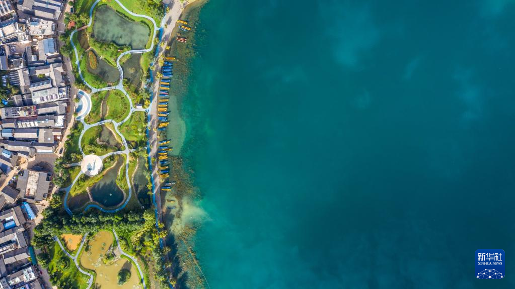 9月24日拍摄的泸沽湖里格半岛景色(无人机照片)。 位于中国西南滇川交界处的泸沽湖有“高原明珠”之称,湖面海拔2690米,面积约50平方公里,以绝美的湖光山色和神秘的摩梭文化受到海内外游客的青睐。 新华社记者陈欣波摄pagebreak