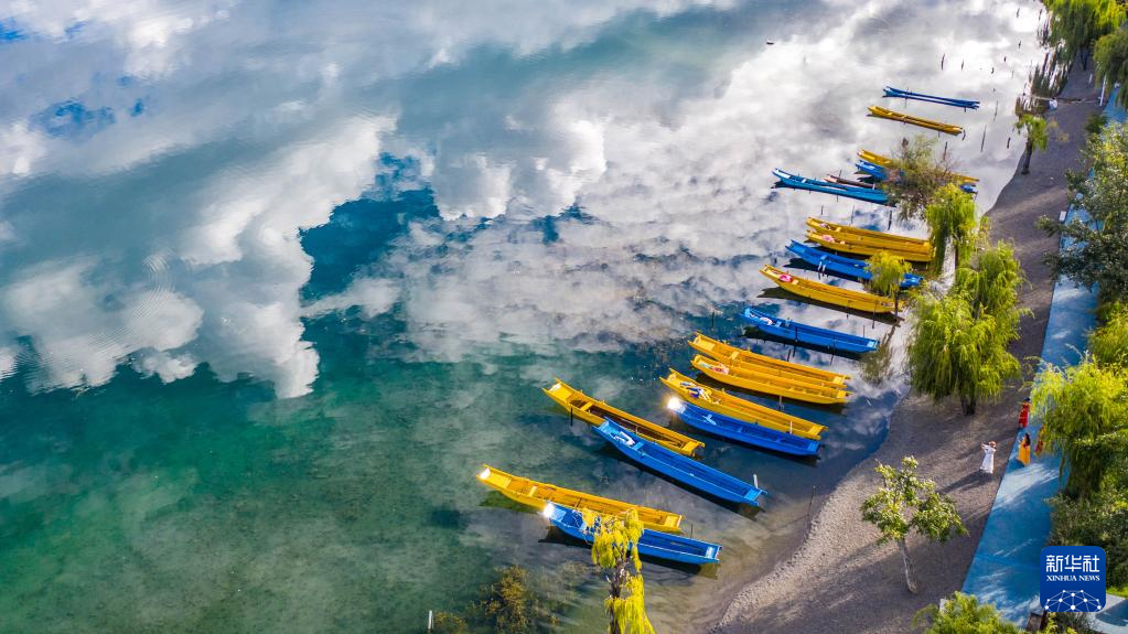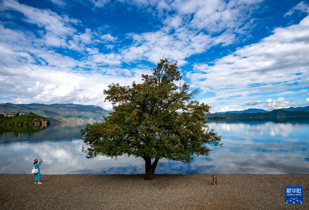 这是9月24日拍摄的泸沽湖情人滩景色。 位于中国西南滇川交界处的泸沽湖有“高原明珠”之称,湖面海拔2690米,面积约50平方公里,以绝美的湖光山色和神秘的摩梭文化受到海内外游客的青睐。 新华社记者陈欣波摄pagebreak