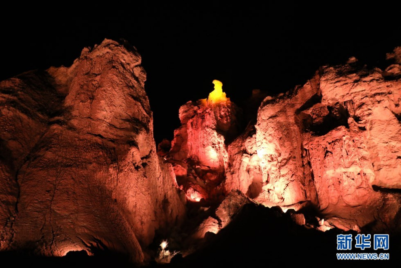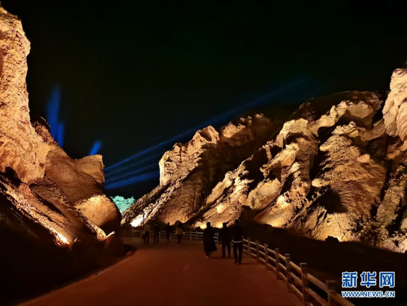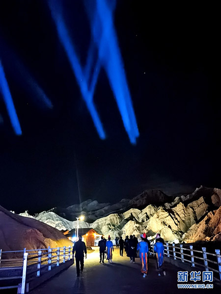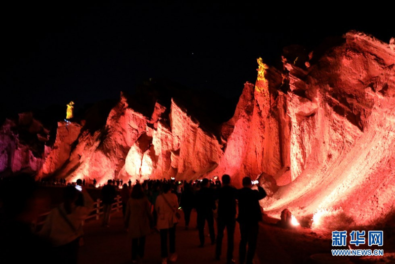 张掖七彩丹霞景区万象土林谷华灯闪烁。新华网发(童张伟 摄)